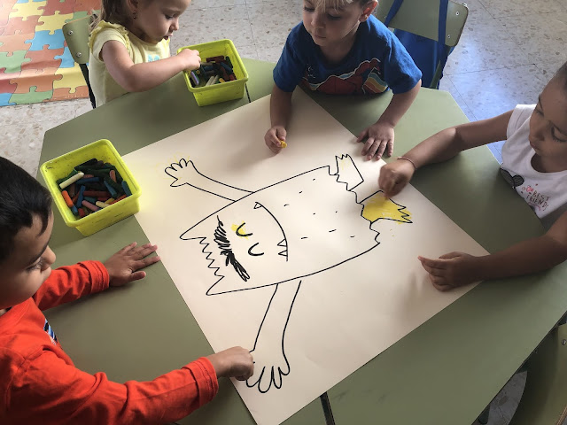 Seguimos conociendo nuevas emociones. En este caso, la lectura del Patito Feo, nos llevo a la tristeza. Tras hablarlo en clase, vimos que cosas son las que nos ponen tristes. Después, fabricamos a nuestro monstruo azul y sus círculos.